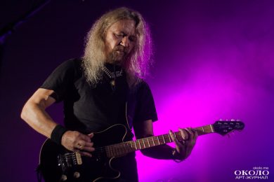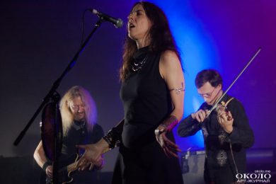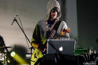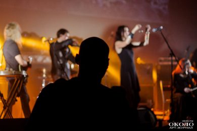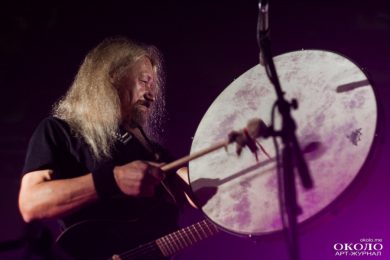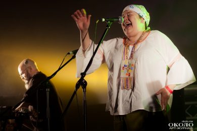 Видеоряд соответствующий:этнические узоры, картины природы. Он свой под каждую песню, но все равно почти не успеваешь смотреть –так поглощает происходящее на сцене. Первая песня очень атмосферна, протяжна, утягивает, погружает в свое витиеватое пространство, этакая русская психоделика. Оказывается, так онов принципеи есть. Группа исполняет не песни – скорее это древние славянские обряды, ритуалы, заговоры 12-17 века. Музыка очень разнообразна, в одних песнях звучит энергичный роковый рифф, в других –танцевальная электроника. Не обошлось и без веселья, а именно безрюмки коньяка, выпитого на сцене перед песней-заговором от пьянства.