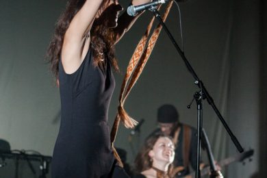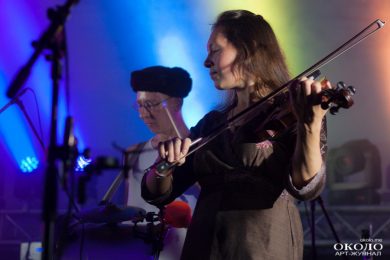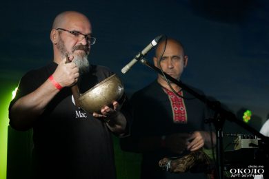 Первыми на сцене в этот раз выступил московский этно-электронный проект Волга.Необычайно красивый, гипнотический голос вокалисткив обрамлении то трип-хопа, то даба, то эмбиента увлекает слушателей в путешествие за пределы обыденности, в мир духов, тайн и круговороты жизни-смерти. Поющая чаша, необыкновенный струнно-смычковый инструмент, созданный одним из участников группы –Юрием Балашовым – оттеняют завораживающий саунд группы.