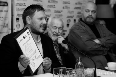 В завершение пресс — конференции пресс — атташе фестиваля Дмитрий Губин отметил работу жюри фестиваля, указав на то, что это ад, притом бесплатный. После этого Елизавета Кулик, представитель партнера фестиваля «Галерии Михайлов» вручила призы членам жюри.