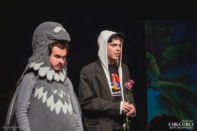 Не случайно возникает в самом начале спектакля убитый голубь Джордж, сострадание к которому у Леши появляется сильно позже. Так же как не случайно он сначала с трудом, а потом более отчетливо вспоминает урок школьного психолога и свои рисунки, пытаясь сделать выводы, понять себя и свои мысли. Намеченная «стрелка» с Вальторном, обида на Маринку, забывшую про него на отдыхе, лишние слова, сказанные Аньке, и необходимость во всем этом разобраться заставляет Лешу стать серьезнее и по-другому посмотреть на все вокруг. Алексей Забегин и играет запутавшегося подростка, осознавшего, что мир вокруг него гораздо шире и сложнее, чем он себе представлял.