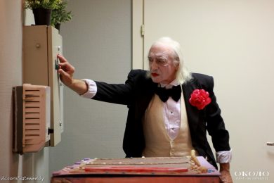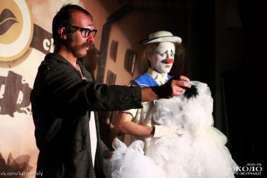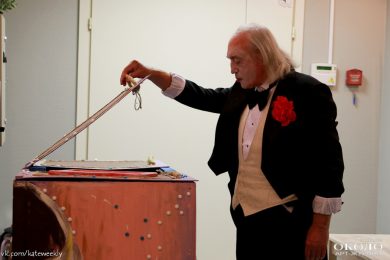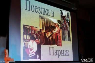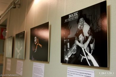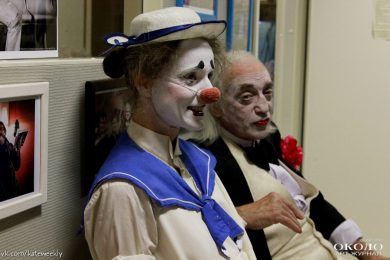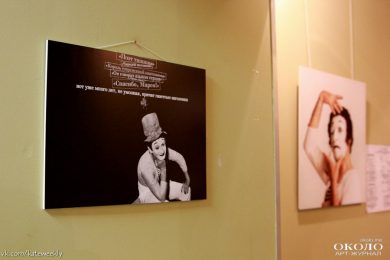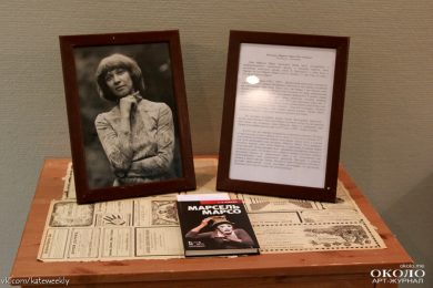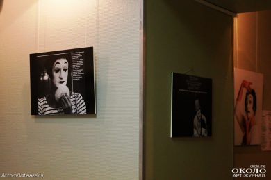 В холле между кафе и залом для выступления были вывешены фотографий из архива Елены Марковой, посвященные 90-летию Марселя Марсо. Именно Елена Викторовна написала единственную в мире монографию знаменитого мима. Здесь же, под одной из фотографий, лежит та самая книга «Марсель Марсо» из личного архива, которую мог подержать в руках и пролистать любой желающий.