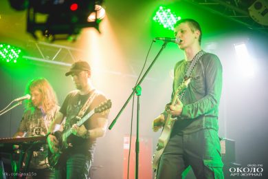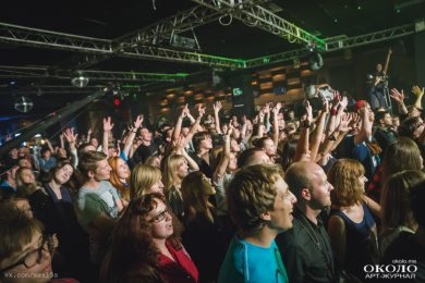 Надо сказать, что не только зрители, но и сами музыканты наслаждались процессом и выкладывались на полную. Песни лились без остановки, и лишь в небольшие промежутки ребятам удавалось перевести дух и пообщаться с залом. Интерактив вышел весьма душевным, простым, интересным, а главное — не затянутым. Где-то в середине программы, Юзленко в одной из песен сыграл соло на гитаре, что вызвало шквал аплодисментов.