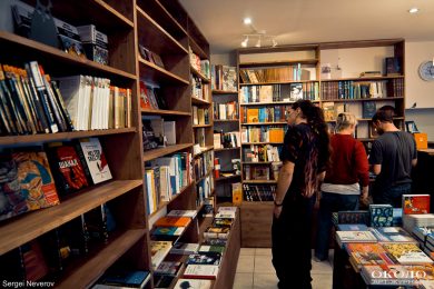 В магазине представлена самая отборная литература. А чтобы понять, какая, нужно просто сюда прийти, и задержитесь вы здесь надолго, перелистывая книги. В «Фаренгейте 451» есть всё, чтобы было приятно делать покупки: дружелюбные и готовые помочь сотрудники, большой ассортимент товара, отличная обстановка и чашечка кофе. Магазин находится в десяти минутах от ст.м. Маяковская и Чернышевская. Мне удалость пообщаться с совладельцами магазина — Михаилом Маляровым и Платоном Романовым.