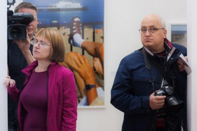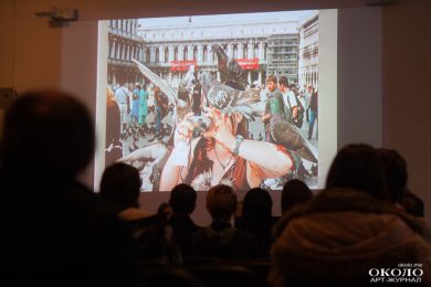 Вторая половина часа была отведена для вопросов из зала. В процессе общения с координатором Magnum’а удалось выяснить, что Мартин Парр достиг популярности и признания среди западной общественности, благодаря многочисленным фотокнигам, выпущенным им. Ведь распространять книги гораздо проще, чем организовывать выставки. Общественное мнение, равно как и коллеги по цеху, не всегда были благосклонны к Парру. В 1986 году его книга «Последнее прибежище» вызвало волну критики и недовольства. Мартина обвиняли в неуважении к своим моделям. Ответом художника стали серии «Автопортрет» и «Мистер Повседневность»: Парр фотографировал себя в местах массового отдыха, показывая, тем самым, что он равен своим героям и ни в коем случае не смотрит на них свысока.