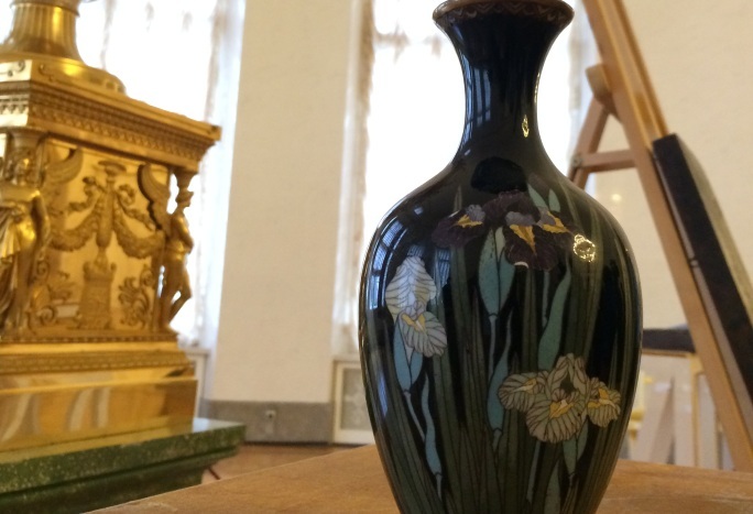 Одна из подаренных вазочек изготовлена на Императорском фарфоровом заводе в 1910 году в сложной технике кристаллической глазури. Вторая — выполнена в технике «клуазоне» (перегородчатой эмали). Эксперты отмечают, на дне у обеих – инвентарные номера Александровского дворца. Судя по довоенным инвентарным книгам, они находились в личных комнатах Александры Федоровны – Кленовой и Палисандровой гостиных.
