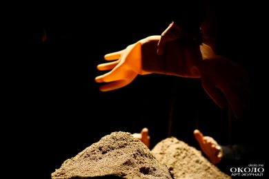 Набережная Фонтанки 65, вход справа, четвёртый этаж. «Уже началось». Тёмный скромный зал человек на 40. Спотыкаюсь о фотографов в нулевом ряду на полу, располагаюсь рядом. Доски из-под меня плавно переходят в место действия. Белые робинзоновские зарубки на чёрном полу или пространство вариантов. Деревянный стол, резиновые перчатки, мокрый песок с мелкими камнями, двое. Свет вклеивает в сознание лица мужчин, у каждого борода. Люди бороздят темноту. Прорывают её своими голосами. Ведут метафорические размышления о популярной игре, в которой можно прокачивать персонажа по 108 характеристикам. Он живёт на автопилоте, когда человек не играет, растёт независимо, со временем, но потом всё равно умирает и перерождается в новую жизнь. Смысл игры — остаться в том месте, в котором оказываешься после смерти и до рождения, не возвращаться в игру, как можно дольше.