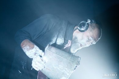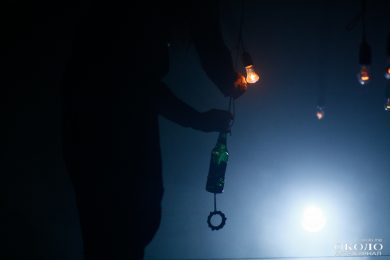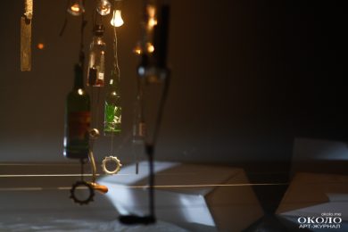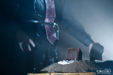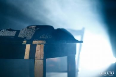 Продавливание словами левого полушария мозга постепенно ослабевает, первая часть спектакля «для сознания» уходит в темноту, скользя между лучами света. Свет, звук, жесты, запахи – это уже другая часть, она стучится в правое полушарие, взывая к подсознанию. Слишком многое ещё оно не может разгадать, но это лишь повод чаще взывать к нему. Боем, скрипом, стуком, криком. Эмбиент перемежается с нойзом, Денис Антонов, барабанщик ПТВП, читает в микрофон стихи, а ритм отстукивает похоронный марш. Под ногами актёров натянуты струны, по которым проходятся подвешенные бутылки, дополняя аранжировку своими хаотичными колебаниями. И кажется, что весь наш мир – музыкальный инструмент, мелодия и ритм которого зависят от составляющих самого мира.