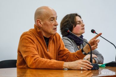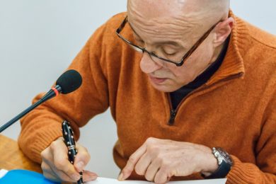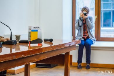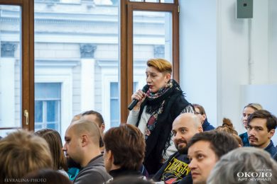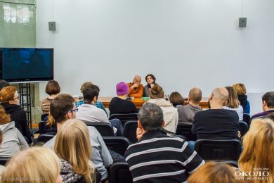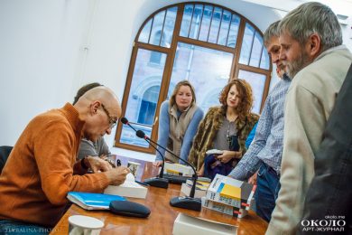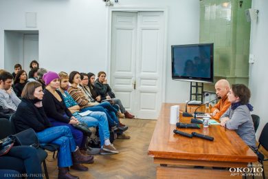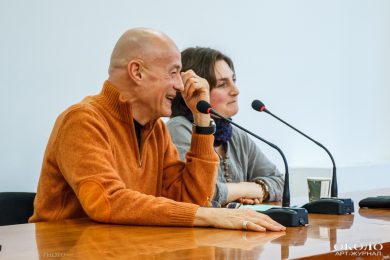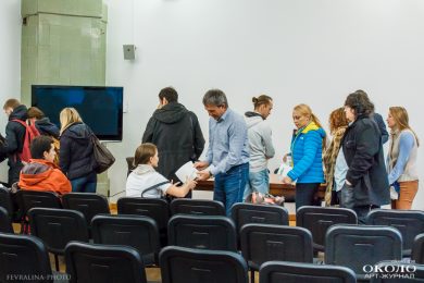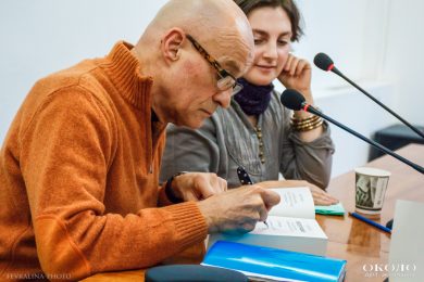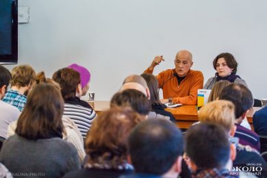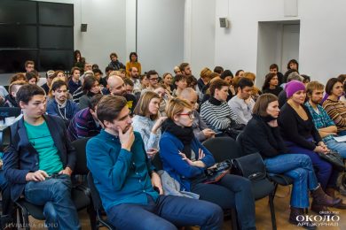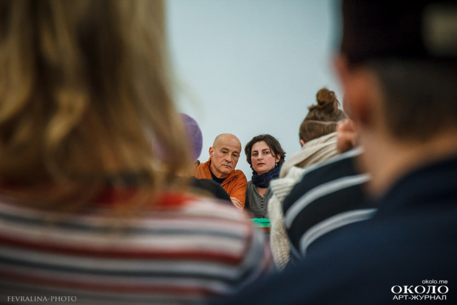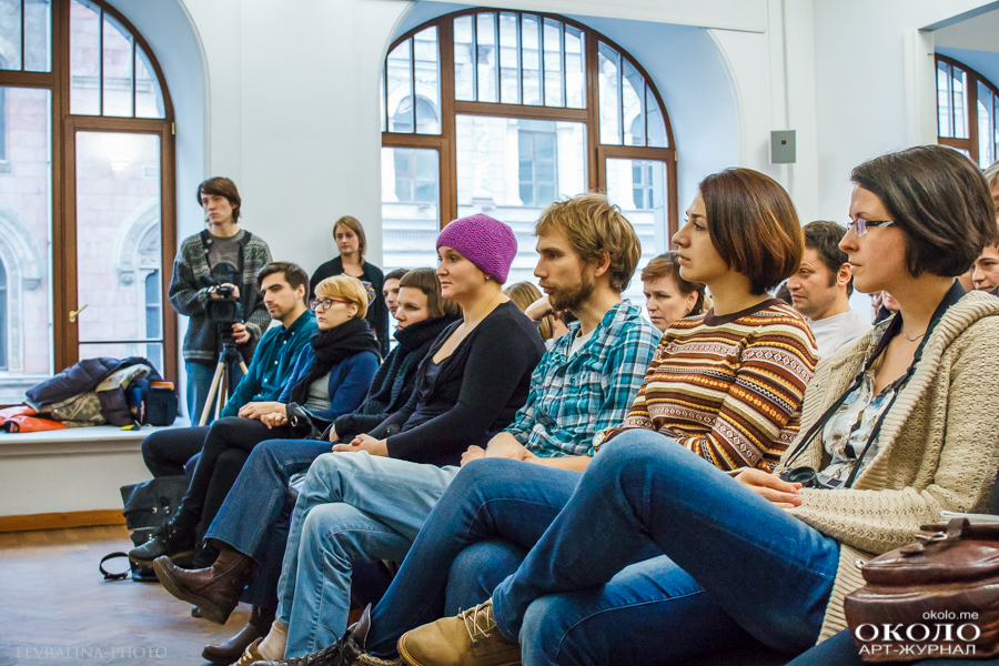 Лекция Андре Руйе продолжалась около двух часов, после чего слушатели получили возможность задать профессору вопросы. Дискуссия, в ходе которой были затронуты как некоторые нюансы теории Руйе, так и вечные темы, продлилась еще около получаса. В завершение вечера все желающие смогли приобрести книгу «ФОТОГРАФИЯ между документом и современным искусством» с автографом автора и личным пожеланием. Руйе подробно спрашивал каждого, кто подходил к нему с новеньким экземпляром о том, чем он занимается и как связан с фотографией. Некоторые брали сразу два экземпляра: один для себя, второй для друзей. Руйе без колебаний писал личные пожелании и друзьям.