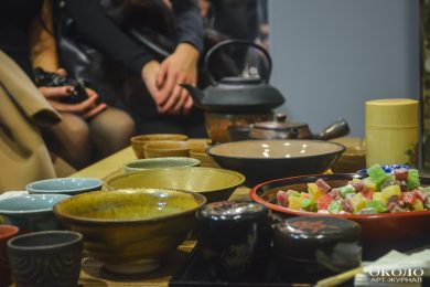 Конечно, здесь не было совсем уж традиционных приборов, так же, как и не выбирался почётный гость и прочее, однако, правила именно заваривания и дальнейшей дегустации были соблюдены на сто процентов. Сама церемония повторялась несколько раз за время проведения мероприятия. Кстати, эта локация являлась второй по популярности в тот день.