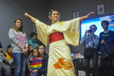 А первыми по популярности были представления, поставленные школой-студией Дилором Ахмедовой: кимоно-шоу и мастер-класс по правильному одеванию традиционного японского наряда, а также мастер-классы же, но по танцам (традиционному, боевому Татимавари, кабуки), Айкидо Ёсинкану и исполнение песен на японском языке. В конференц-зал было не войти, а те же, кому это удавалось, подолгу стояли, силясь разглядеть хоть что-нибудь в толпе.