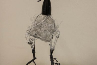 Идея создания «Птицы» заключалась в совмещении нескольких разных предметов в одно целое. «Отвлекающим маневром» на фоне всех этих, на первый взгляд несочетающихся друг с другом предметов, выделяется простая малярная кисть, которая подталкивает зрителя к размышлениям и попыткам придумать собственный ответ на вопрос: зачем же она здесь нужна. По признанию автора, это специальная техника использования самых разных ненужных материалов, которые есть под рукой. Их никто не создавал, не вырезал преднамеренно, главное — сделать из них объект, у которого возникнет определенный характер и специфика. Каждый видит в работах что-то свое, нет и не может быть однозначного восприятия. Так, главным компонентом одной из скульптур является лопата, которая, разумеется, уже совсем не лопата, а часть инсталляции, та же участь постигла вешалку, проволоку и многие другие совершенно не сочетающиеся с искусством вещи.