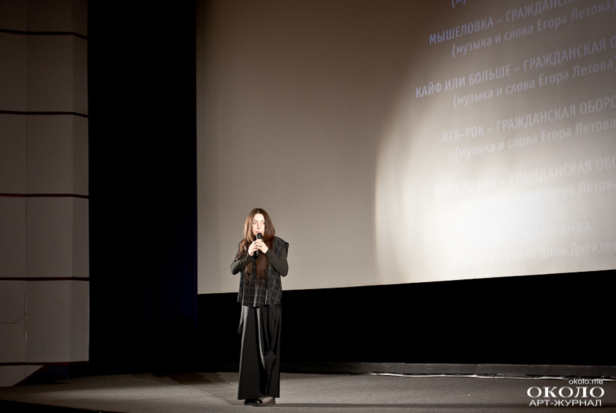 Показ открыла режиссер фильма, Наталья Бегунова. Несмотря на музыкальной прошлое, сейчас Наталья в основном занимается переизданием альбомов «Гражданской обороны» и работой с архивами. Наталья без лишних слов открыла кинопоказ и вместе со зрителями погрузилась в созерцание мира Егора Летова.