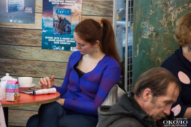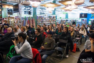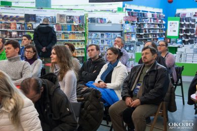 Желающих было немало. Среди них – и студентки филологического факультета, и бабушки за 60, и ученики старших классов, и люди среднего возраста. В общем, публика подобралась самая разная. Увидев скопление людей у сцены, к ней подтягивались и люди, изначально пришедшие в магазин по другим делам.