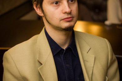 В то время, пока шли обсуждения этого казуса, помещение Малого зала наполнялось не совсем адекватной публикой из соседних апартаментов, которая, по-видимому, переводила дух от табачного смрада и алкогольного угара. Коллективными усилиями преданных поклонников творчества Александра Гумбарга выступление удалось перенести в другое место, в Blur Cafe. Не Олимпийский, конечно, но место весьма теплое и уютное! Оперативно добравшись до нового места назначения, Саша представил-таки Москве свой стремительный и душевный сет.