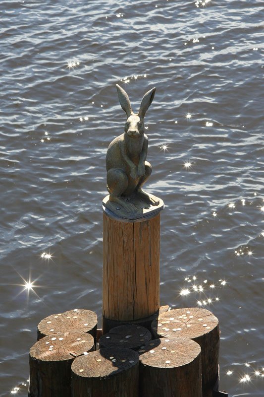 Ещё одним животным, исполняющим желания, является зайчик на свае, спасающийся от одного из знаменитых Петербуржских наводнений. Ушастого можно найти рядом с Иоановским равелином. По легенде, прототип современного зайки спасся от наводнения, запрыгнув в огромный сапог Петра 1, и в благодарность создателю нашего города теперь он исполняет желания горожан — стоит лишь закинуть монетку к его лапкам. Помимо этого, скульптура посвящена петербургским наводнениям: на невысоком постаменте указаны метки всех потопов, случавшихся в нашем городе.