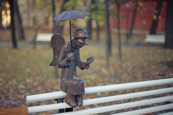 Ещё одной замечательной и доброй скульптурой является памятник Петербургскому ангелу. Дедушка-ангел тихо сидит на скамейке в Измайловском саду. По задумке автора, фигура посвящена старшему поколению, на годы которого пришлись две мировые и гражданская войны, блокада и репрессии. Тем, кому, несмотря на все ужасы и лишения, удалось сохранить доброту и свет в сердце. Как и любой ангел, он исполняет самые добрые и сокровенные желания тех, кто хочет этого всей душой.