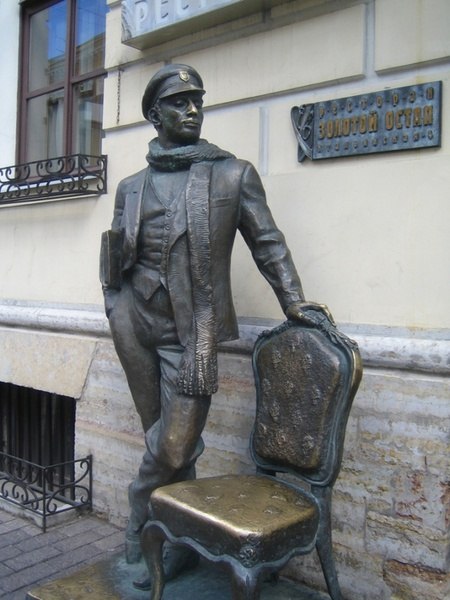 Наверное, самая известная среди петербуржцев фигура располагается недалеко от Площади Искусств у дома №4 по Итальянской улице. Это памятник известному персонажу книг Ильфа и Петрова Остапу Бендеру. Великий комбинатор, в неизменных костюме, фуражке и шарфе, опирается на один из стульев, за которыми, он с таким рвением гонялся во всем известной книге. Под мышкой у него, по слухам, папка с компроматом на подпольного миллионера Корейко. Статуя была установлена 25 июля 2000 года, в день рождения героя. Этот памятник всегда привлекает гостей нашего города, которые хотят сфотографироваться с Остапом, а также всех, кому хочется попросить у него помощи в авантюрном деле (достаточно лишь потереть нос персонажа или сесть на стул).