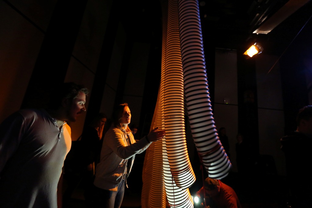 После перформанса, который длился около получаса, каждому в зале представилась возможность сыграть на замысловатых инструментах и создать свою мелодию. Это оказалось не так просто, учитывая то, что к инструментам нужно приловчиться, а так как каждый испытывал инструмент по-своему, то единой мелодии так никто и не услышал. Однако сама попытка была крайне интересна и в плане задумки и в плане реализации.