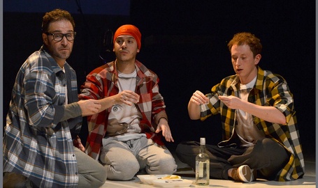 Три актера, бегущих на пустой сцене, даже не бегущих, а изображающих бег через танец или песню, и три музыканта, расположившиеся у задника сцены, изредка показывающего видео-проекции массовых забегов или толпы людей – это все, из чего состоит двухчасовой спектакль. Отсутствием декораций и однотипным существованием актеров на сцене сегодня уже никого не удивишь, но удивлять и не собирались. Только поговорить о жизни, о человеке, задать себе вопросы о себе самом. И задали – в наиболее показательной метафоричной форме.
