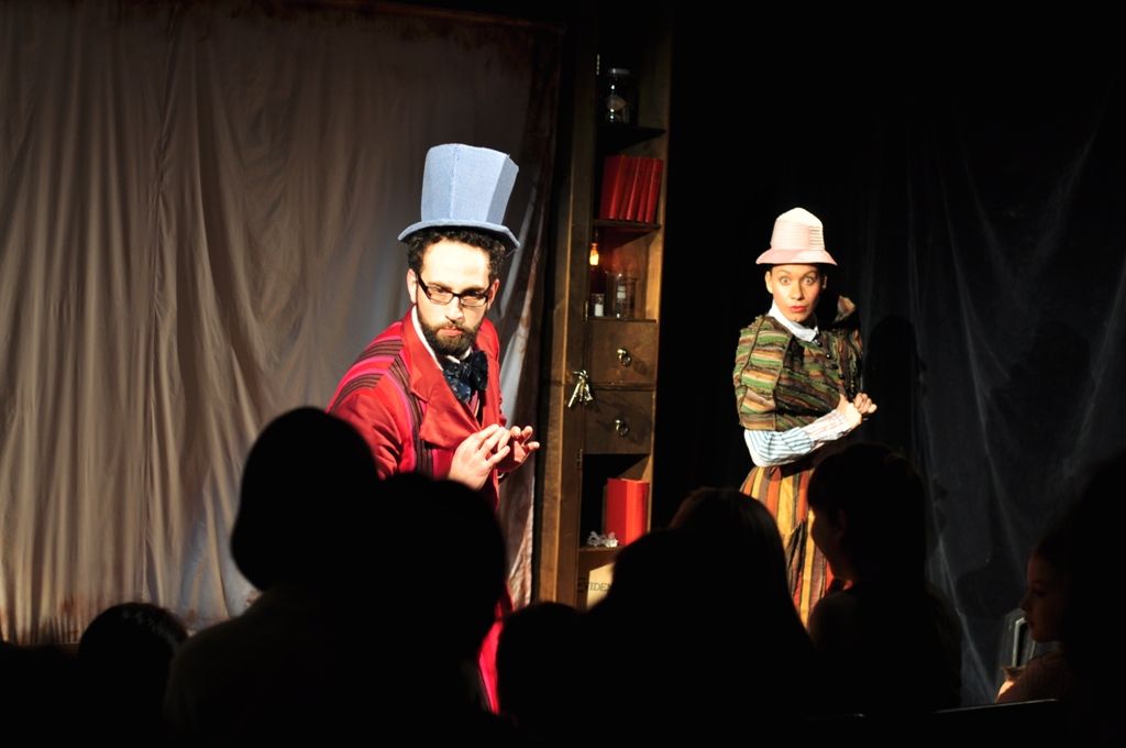 Захватить внимание детей постановщикам удаётся не только за счёт необычности информации, но и её наглядности: смешать в пробирке Южный полюс, выпустить в зал живого эльфа, а затем поймать его в банку. Всё по силам мастерам-учёным! Очередной находкой режиссёра стал «театр в театре»: весь спектакль сопровождается свето-теневым представлением, похожим на качественно выполненный мультфильм работы талантливой Наоми Эверал. Постановка хороша не только аспектом визуализации, но и музыкальным сопровождением: укулеле, гитара и аккордеон создают яркую музыкальную ауру вокруг происходящего. Атмосферность спектаклю придают элементы английской культуры: язык, музыка, поведение – всё это порадует ценителей британского стиля.