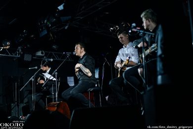 Масштаб мероприятия поразил. Сольные выступления Дмитрия Спирина умещались на террасе клуба MOD и требовали только одного музыканта с акустической гитарой, а в этот раз не хватило даже всего коллектива «Тараканы!». На помощь были призваны перкуссионист, клавишник и две бэк-вокалистки.