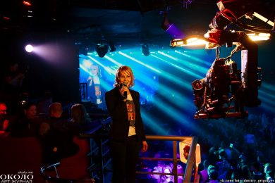 Кран над сценой парит, вылавливая на балконе ведущую, операторы настороженно сидят за камерами, заветный фонарь ON AIR горит пылающим красным, мелькают мониторы, пивные стаканы расходятся в руки желающих как по конвейеру. Гул. Своего рода смог, нуар и хмельной аромат, бьющий по носу случайных зевак, звон косух, сдавленные напульсниками запястья – завсегдатаи призраки русского рока в сборе. К слову, держать руку на пульсе в этот вечер действительно пришлось.