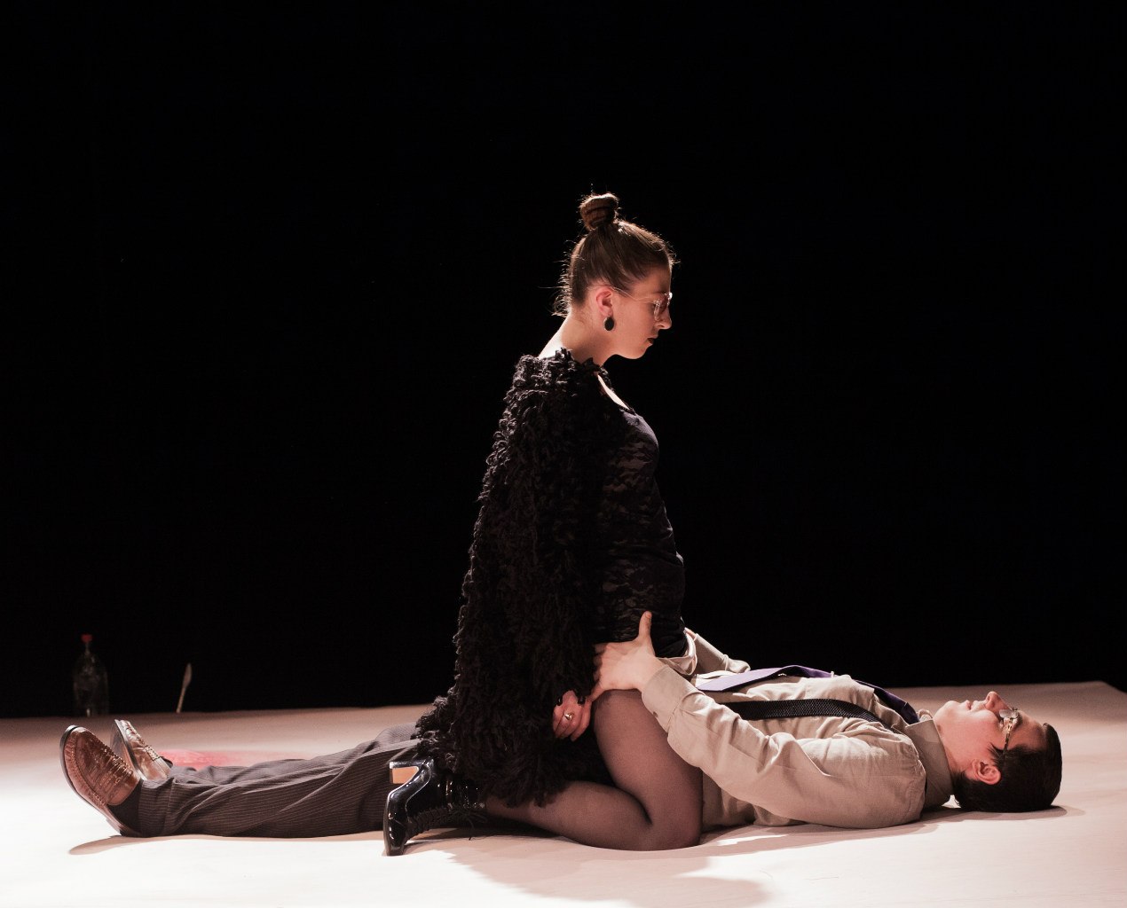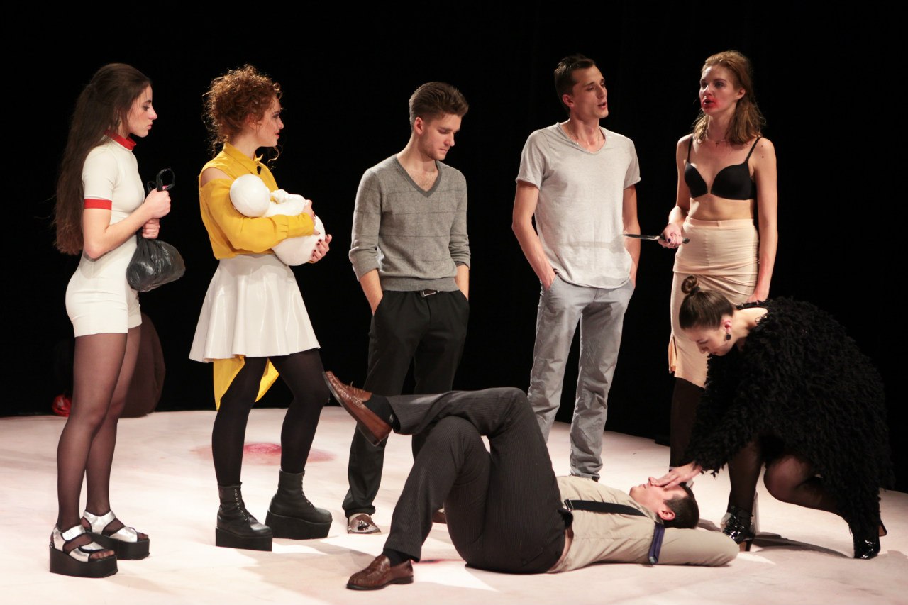 Минимум декораций – очень выгодная деталь постановки Олега Ерёмина. Ничего лишнего, что могло бы отвлечь от игры актёров мастерской Зеланда. А играют они прекрасно: мимика, интонации, движения – все уместно и без фальши.