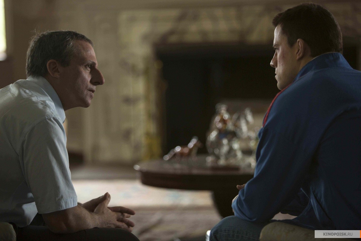 Режиссёрская смелость Беннетта Миллера не только позволяет ему работать, отойдя от голливудского канона, где каждое действие героев непременно подкрепляется вербализацией, но и даёт зрителю возможность сопереживать и наделять происходящее той или иной трактовкой. Апофеозом такого вольнодумного подхода Миллера становится сцена, когда Джон Дюпон ночью зовёт Марка Шульца в спортивный зал. В этой зарисовке длительностью меньше минуты Беннетт так выстраивает картинку, что сказать с уверенностью было ли это внеочередное занятие борьбой или же изнасилование, не представляется возможным.
