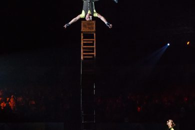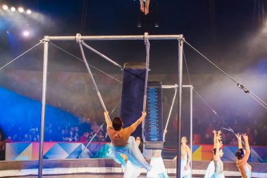Особенно впечатлил и юную, и взрослую публику номер «Встречные качели». Обычно подобные номера исполняли мужчины, но здесь создатели перевернули всё представление об этом трюке: хрупкие девушки в развевающихся платьях бесстрашно перепрыгивали с одного помоста на другой. Огромные платформы находились в постоянном движении, раскачиваясь с каждым разом всё сильнее и сильнее, прыжки становились сложнее: переворот в воздухе, шпагат, кувырок. Из зрительного зала постоянно раздались возгласы испуга и удивления.