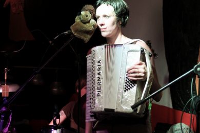 Со сцены в зал ключом бьет энергия. Песню с нового альбома «Кутила пила» о той, что томится и ждет не того принца, ─ под говорящим названием «Дура», ─ Настя исполнила так, словно всей своей харизмой призывала не стоять в бесплодных раздумьях, а начать уже сбрасывать с себя все безвылазно-будничное. Например, пуститься плясать так, чтобы «застучало в польке сердце, и задвигались дома». Пока Наташа с самозабвением извивала веер своего аккордеона, Настя эффектно исполнила соло на стиральной доске.
