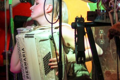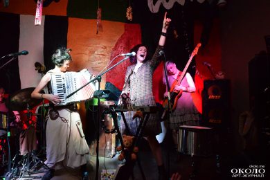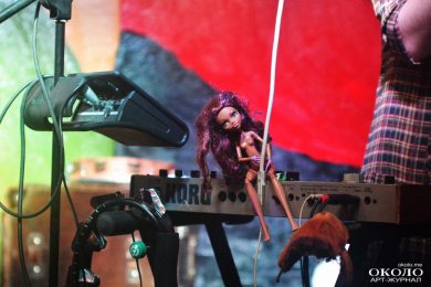 Зрители, будто ожившие куклы, заполнили пространство клуба. От них тянутся ниточки прямо на сцену, где скоро опытные кукловоды заставят даже самых «деревянных» подопечных скакать, прыгать, беситься и танцевать от «техно» до «востока». Звучит таинственное «Интро»: на сцене поочередно появляются музыканты. К плотному звучанию бас-гитары Гали Киселевой прибавляются ударные, за традиционной барабанной установкой, а также колоколами, «звенелками», «гремелками» и глиняным горшком ─ Катя Фёдорова. Наконец, в музыкальную палитру вплескивается яркая краска аккордеона в исполнении Наташи Потапенко. Зрители в нетерпеливом предвкушении: бурные аплодисменты раздаются в момент, когда Настя Постникова выходит из-за кулис и «подмешивает» в музыку преобразованное звучание клавишных.