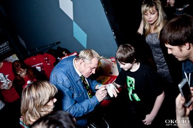 Вокруг много людей — зал полон. Они, в большинстве своем, имеют схожие особенности. Первая и главная — отсутствие и намека на агрессию. Даже не похоже на толпу, собравшуюся на рок-концерт! Кажется, я пришла более «агрессивной»! Нет, в их лицах нет никакой «ми-ми-мишности» и сладости. Просто, когда слегка толкаешь человека в большом скоплении людей, чтобы пройти и пронести большую вспышку Ольгиного фотоаппарата, он поворачивается, смотрит в глаза и совершенно спокойно кивает — проходи, мол. Не сравнить с подобной толкучкой в метро. Иногда задетый аппаратурой фотографа человек даже улыбается. Общее настроение праздника витает в воздухе.