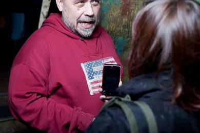 Народу перед клубом много. Стоят длинные очереди — в зал еще не запускают. Двери открылись за полчаса до начала, и мы вошли. Встретили в зале Михаила, познакомились лицом к лицу и немного побеседовали.