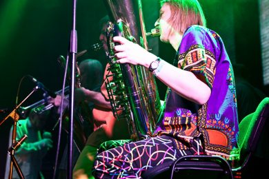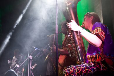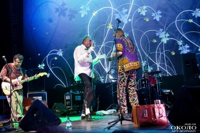 Я слушаю первые песни. Во мне борются поклонник Ы и музыкант, оценивающий работу коллег. Хотя, довольно скоро чувства победили уши: главное в выступлении этой группы — эмоции! Импровизация, сплоченность с залом, непередаваемая экспрессия, которая льется от всего коллектива — зал живет так же. Каждый музыкант погружен в музыку, которая звучит внутри него, и в то же время находится в открытом контакте с залом.