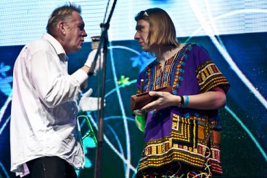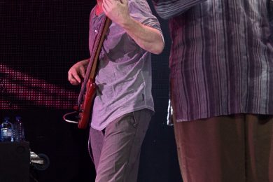 Дмитрий Озерский — клавишник группы, пришел в состав в 1981 году. Тогда он не умел ни на чем играть, а только писал тексты. По совету Федорова он начинает изучать клавишные — сначала в музыкальной школе, потом — перейдя на самостоятельное образование. Хоть мне и не о чем было спрашивать его, потому что все, что я хотела узнать, мне рассказал Михаил, все же не могла не подойти. Дмитрий из тех людей, которые, повернувшись, тут же обдает тебя волной густой теплой улыбки и окутывают своей харизмой. Низкий голос, мерно и спокойно роняющий фразы сквозь полуулыбку, дополняет впечатление. Я бы с удовольствием задержалась дольше в плену этого обаяния, но я и так отвлекла Озерского от беседы. «Этот концерт для нас — снова праздник!» — он улыбнулся, не оставив сомнений. Я пожелала удачного выступления и стала ждать начала.