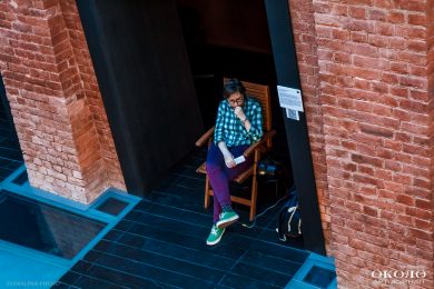 Предметом инсталляции «Телесно-ориентированная поэзия» стал обычный стул, который, казалось бы, ничем не примечателен. Но стоит слушателю на него сесть и надеть наушники, как происходила магия: предмет начинал незаметно вибрировать в такт стихам в наушниках, отмечая самые яркие места.