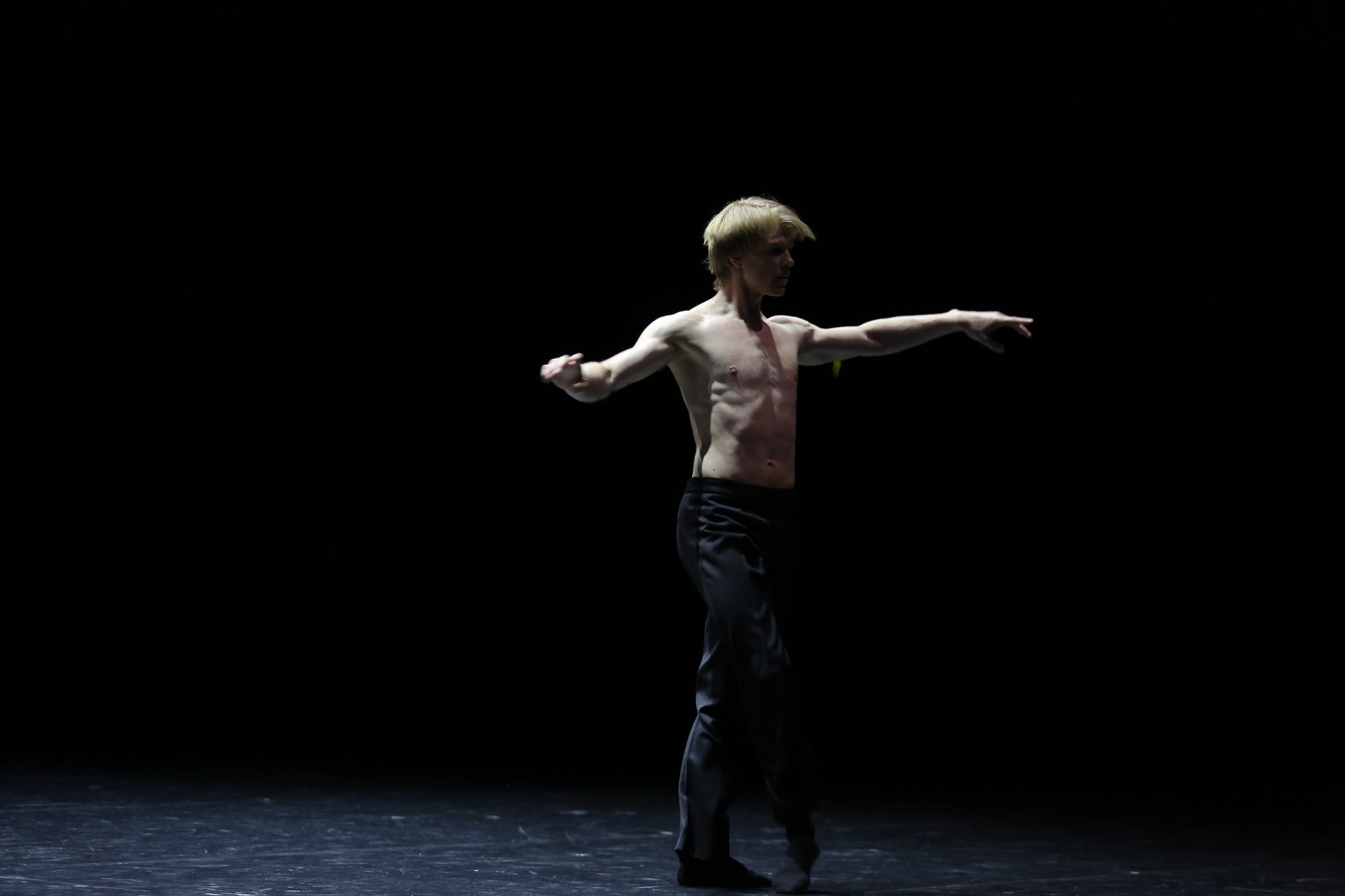 Единственным мужским соло-выступлением в программе вечера стало AFFI в хореографии Марко Гёке. Треморные анималистичные движения отражали яркую неповторимость танцевального авангарда. Классика здесь отходит на обочину, уступая дорогу эксперименту. Вместо классической музыки танцор двигался по сцене под кантри от Джонни Кэша. Тишину в финале выступления нарушает свист, музыка продолжается, а танец продолжается за ним. Это выступление уникально тем, что чувства здесь передаются не только телом, Марко Гёке расширяет инструменты передачи смысла: так появляется голос и даже в некотором роде интерактив.