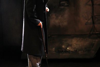 Цикл рассказов И. Бабеля «На поле чести», написанный в 1920-м году по фронтовым запискам французских офицеров, встраивается в один ассоциативный ряд с романами Э.М. Ремарка о первой мировой войне. В этих рассказах-очерках дана та же потерянность простого человека на войне, его беззащитность перед лицом роковых событий истории. Однако в отличие от Ремарка, Бабель пишет экономнее (все-таки другой жанр), и на единицу времени и пространства у него приходится боли и страха в разы больше! От его текста, как от разинутого зева войны — щемящий ужас, душевные ожоги. Передать это ощущение со сцены, не упростив, не растеряв и не переврав — такая непростая задача будет неизменно вставать перед любым режиссером, взявшим этот материал для спектакля. Андрею Смолко, режиссеру спектакля «Письма из пепла», удается справиться с непростой прозой Бабеля. Он выбирает для постановки три первые истории цикла, меняя их очередность: «Квакер», «Семейство папаши Мареско», «На поле чести» и дополняя хроникальным видеорядом. Все действие разворачивается на площадке, усыпанной гравием. Задником сцены служит страшная железная конструкция на колесах (что-то среднее между танком, поездом и бронеавтомобилем), она выезжает по рельсам вперед, монтируя сцены (художник — Анастасия Юдина). Здесь очевидна метафора: перед нами машина смерти, адская машина войны, которая не щадит никого, и для которой все равны — французы, немцы, люди, лошади.