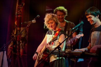 Л: Сначала мы выступали вдвоем с Артемом (клавиши, бэк-вокал) в акустическом варианте. Как-то раз нам заметили: «Здорово, если бы у вас был электрический состав». Мы задумались по этому поводу и начали собирать музыкантов. У нас сменилось много барабанщиков и гитаристов, прежде чем образовался постоянный коллектив. Долгое время мы играли устоявшимся составом, и только в прошлом году Дмитрий Пивень (барабаны) закончил учебу и отделился от нашего коллектива. Так что сейчас у нас есть Гриша, с которым мы активно сотрудничаем.