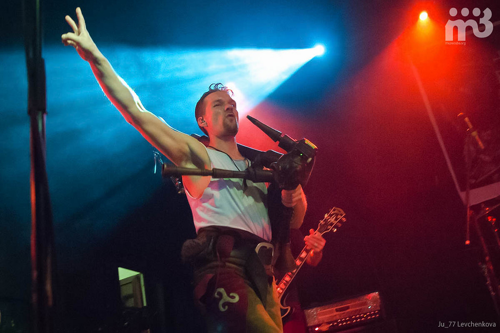 Даже без экстремальных фокусов In Extremo производят огромное впечатление. «Большое спасибо», — почти без акцента благодарит зал Михаэль Райн, вокалист группы. Общается он, как обычно перескакивая с английского на немецкий. Толпа в едином порыве кричит «Danke schön». Да так долго, что музыканты не могут начать играть следующую композицию. В таких взаимных словесных реверансах проходит весь концерт.