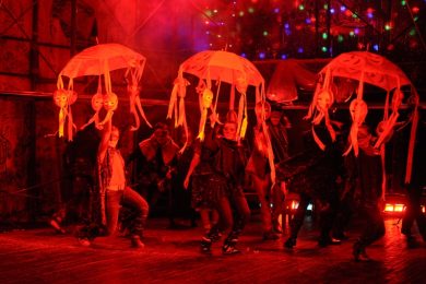 Все чаще и чаще еще одним героем на современной сцене становится музыка и танец. Исключением не стала и «не трагедия»: бал-маскарад, ночь любви Ромео и Джульетты и даже гибель девушки представлены в действии в виде своеобразного танца, сопровождением к которому становится загадочная и печальная музыка композитора Александра Юртаева, как нельзя лучше вписывающаяся в атмосферу полугрезы-полуреальности.
