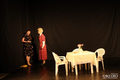 Мы слышим много метафоричного текста, который временами не совсем понятно доносился зрителю. Создавалось ощущение, что актрисы местами «выпадают», обрубая линию роли. Тем не менее, за персонажами было интересно наблюдать, в очень редких случаях хотелось, что называется, «перевернуть страницу». В основном, ощущение некоторой затянутости возникало из-за больших пауз, особенно в монологах, которых в спектакле предостаточно.