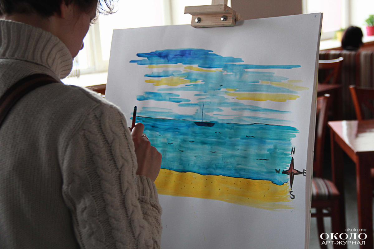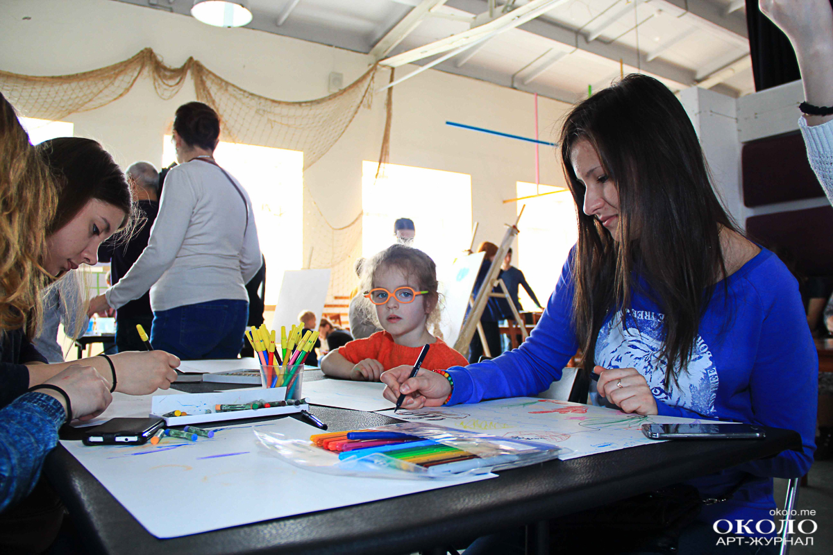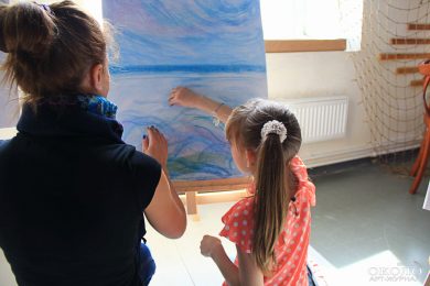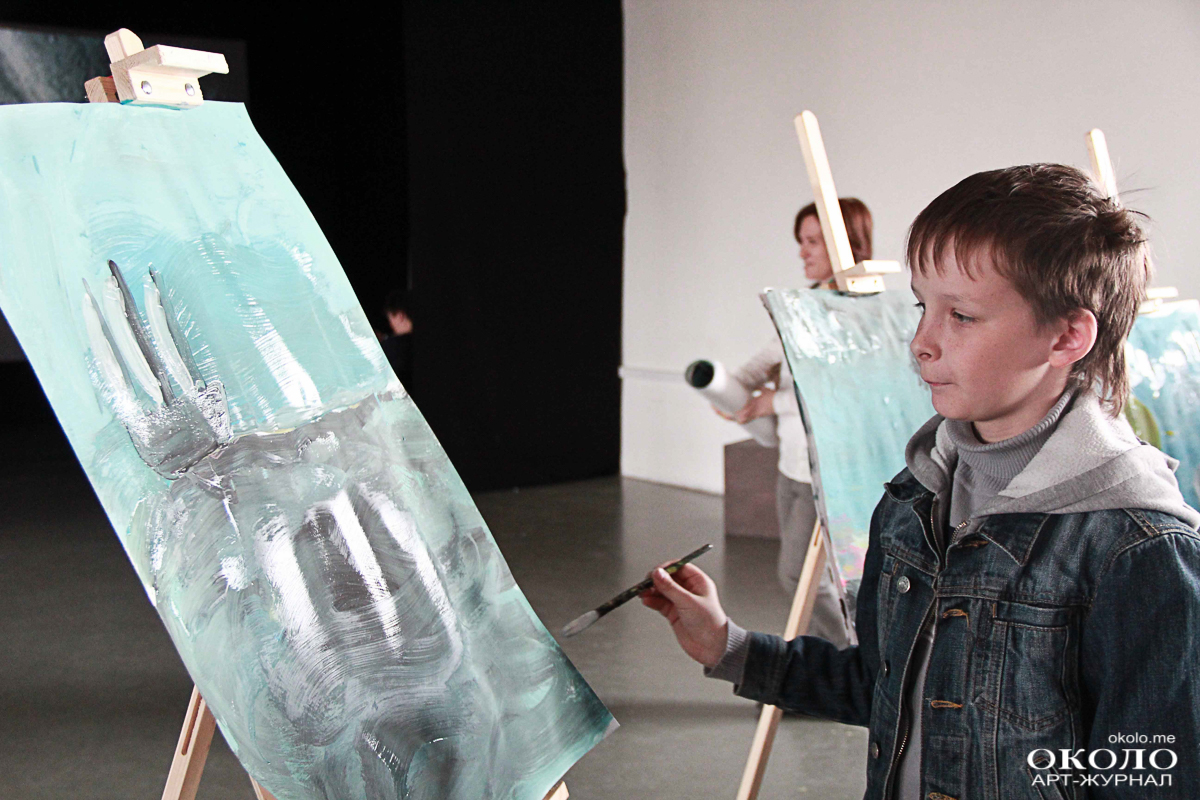 Более спокойные малыши проводят время в творческой части выставки, рисуя красками и пастелью морские пейзажи. За ними следит куратор художественной мастерской, помогая и подсказывая. Девочка Алиса аккуратными движениями выводит корабль и море вокруг него: «Про Айвазовского мне мама много рассказывала, но сама я с его творчеством не знакома, – рассказывает на вид десятилетняя девочка. – У меня тут в центре корабль и море, не знаю, хватит ли места нарисовать ещё берег».