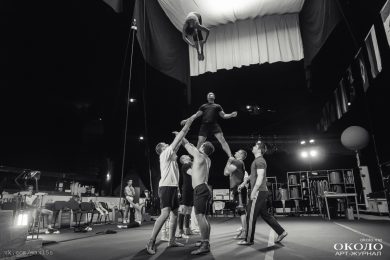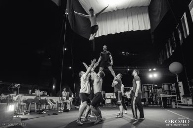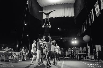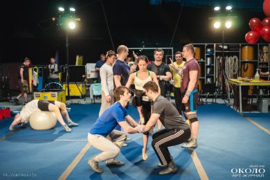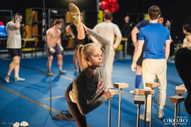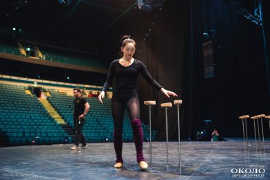 Пройдя ближе к сцене, где проходит репетиция номера «Эквилибр на опорах», тренер начинает давать указания артистке по имени Баска, та улыбается в ответ, кивает и выполняет сказанное. Оглянувшись, можно увидеть огромный амфитеатр Ледового дворца, который спустя несколько часов заполнится зрителями и эмоциями. Увидев этих артистов вблизи, не верится, что они часть этого шоу, их сложно узнать: ни один не выступает с непокрытой головой – на всех есть либо парики, либо шляпы. Во время репетиции все находятся в эластичной гимнастической или спортивной форме, а не в ярких костюмах, ведь изнашивать их раньше времени нет смысла.