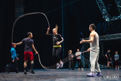 За время пребывания за кулисами нам удалось увидеть несколько спойлеров, среди которых – номер «Скакалка». Артисты прыгают через натянутые тросы, молниеносно меняя свое положение. Сразу после этой репетиции двое артистов – Ката и Француа – смогли уделить нам несколько минут, чтобы рассказать о своей работе в шоу. Как оказалось, совсем не обязательно быть циркачом в третьем поколении, чтобы стать частью этого чарующего мира. Именно так случилось с Катой – до прихода в шоу она была профессиональной спортсменкой. Когда смотришь Cirque du Soleil, сердце замирает от волнения за артистов, не мудрено, что вопрос о страхах самих акробатов тоже возник. Но оказалось, что страх почти не нарушает процесса работы. Ката лишь боится перепутать порядок выполняемых действий, а Француа и вовсе отрезал: «В воздушных номерах нет свободы творчества, каждый участник четко знает, что он должен выполнить, поэтому нет места страху».