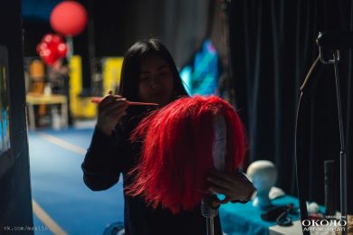 Несомненно, такое большое многоуровневое шоу не может держаться только на артистах. Есть такие люди, как костюмеры, которые остаются в тени, хотя выполняют много важной и нужной работы. Стоит отметить, что из 19 грузовиков, которые перевозят шоу, 1 грузовик полностью занят костюмами, обувью и всем необходим для того, чтобы в любой момент можно было что-то перешить, перекрасить или даже сделать заново. Прямо на наших глазами ботинки главной героини раскрашивались тонкой кисточкой одним из костюмеров. Кстати говоря, каждый элемент наряда создается вручную, не зря стоимость всех костюмов достигает 2 миллионов долларов.
