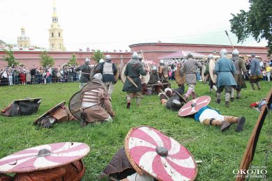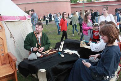 На берегу Петропавловки раскинулась деревня викингов. В военное дело, ремесло и мореплавание древних скандинавов можно было погрузиться в формате «живой истории». Потрогать, поучаствовать, научиться, узнать.