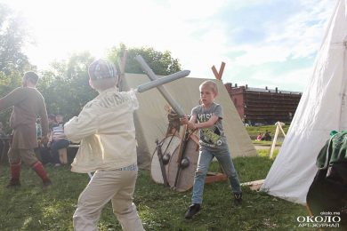 Многое на фестивале сделано для детей, их учат фехтованию на безопасном оружии, специально для них есть маленькие шлемы, щиты и деревянные мечи. Атмосферу жизни и быта викингов поддерживают и этнические музыкальные коллективы, например, петербургская группа Аргемония.