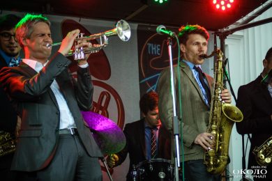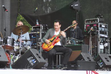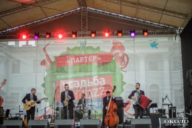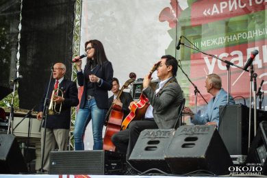 Программа на сцене «Аристократ» одним своим названием говорила о том, что здесь будет звучать музыка для истинных ценителей джаза. Первым на сцене выступил неподражаемый Квинтет Давида Голощекина и чувственная Юлия Касьян. В составе джазового коллектива играли лучшие джазмены нашего города: Николай Сизов (рояль), Гасан Багиров (гитара), Виктор Щербин (ударные), Вадим Михайлов (контрабас). Артистичная и темпераментная манера исполнения этого коллектива пленила с первой ноты: артисты погрузили слушателей в удивительный мир классического джаза. Многие воспользовались уникальной возможностью услышать репертуарную программу Джазовой Филармонии вне её стен.