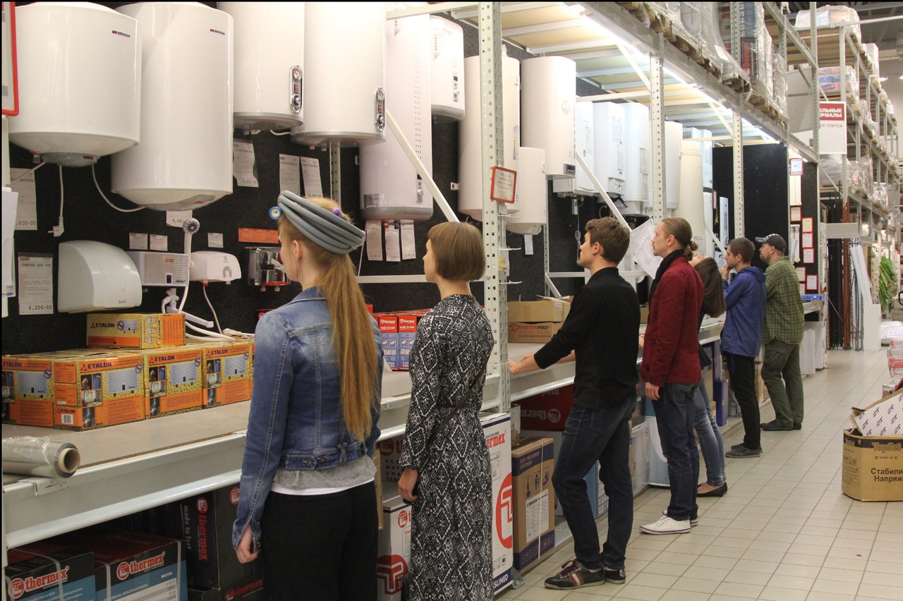Кто такой Хозяин — не объяснялось. К каждому зрителю был прикреплен отдельный актёр. Этот актёр играет только для вас, разговаривает с вами, пытается запутать и просветить одновременно. По гипермаркету «Максидом» я путешествовала в паре с Данилом Вачегиным. К слову, магазин ни на минуту не прерывал свою работу. Так что люди могли наблюдать, как странные парочки рядом с ними бродят, бегают и взаимодействуют с товаром. На моей голове были закреплены наушники, плеер Вачегин держал в руках, ведя меня за собой по пятам. Кентерберийские рассказы перемешивались с поставленной на репит записью с рассуждениями об идеальном доме и культуре потребления. Время от времени мы останавливались и разговаривали. Об идеальных образах, любви и детстве.